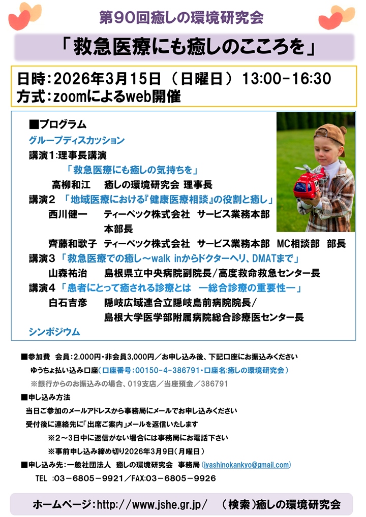 ①⑤第87回癒しの環境研究会日時:2025年2月23日(日曜日)13:00~16:30